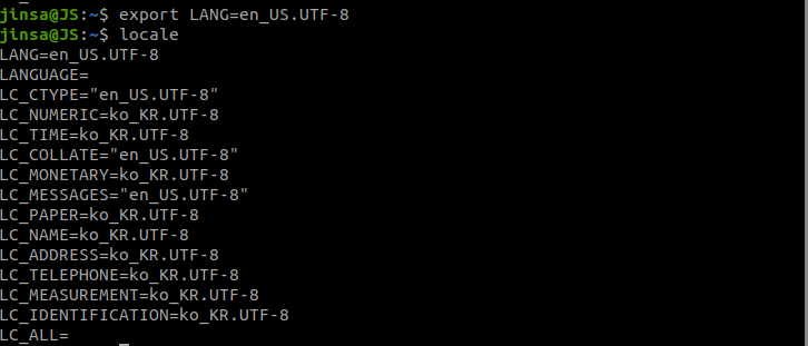 - 현재 세션의 언어 설정을 en_US.UTF-8로 설정