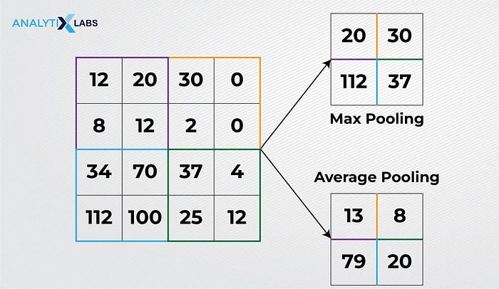 - 평균 풀링(Average Pooling): 영역 내 평균값을 선택