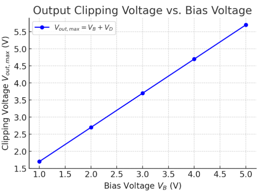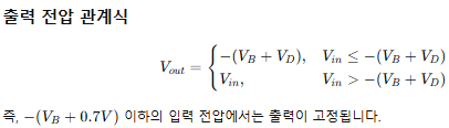 - 순방향 바이어스 만큼 클리퍼 시키 기준 전압이 올라간다. 밑에 식과 같이 V_B+V_D이다.