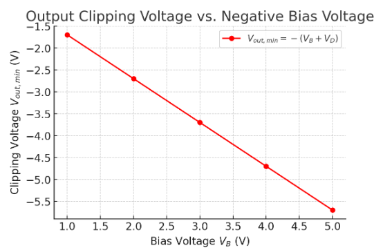 일반적인 양의 클리퍼 회로에서는 입력 신호가 다이오드의 턴온 전압(실리콘 다이오드 기준 약 0.7V)을 초과하면 다이오드가 도통하여 출력이 일정 전압 이상 올라가지 못하게 된다. 반면, 음의 클리퍼 회로에서는 입력 신호가 -0.7V 이하로 내려갈 경우 다이오드가 도통하여 일정 전압 이하의 신호가 잘리게 된다. 이 과정에서 다이오드의 순방향 전압 강하로 인해 이상적인 클리핑이 아닌 0.7V의 오차를 포함한 클리핑이 발생함을 확인할 수 있었다.또한, 바이어스를 추가한 클리퍼 회로에서는 클리핑 전압을 원하는 값으로 조절할 수 있었다. 양의 클리퍼 회로에 순방향 바이어스를 추가하면 클리핑 전압이 로 이동하며, 음의 클리퍼 회로에 역방향 바이어스를 추가하면 클리핑 전압이 로 변경됨을 실험을 통해 확인하였다.