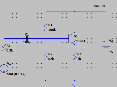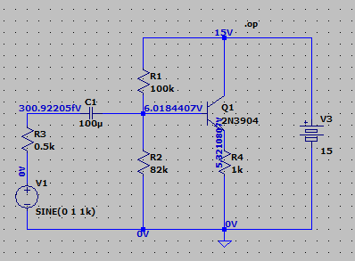 | 컬렉터-이미터 바이어스 전압 | V_CEQ | V(n001)−V(n004)= V |