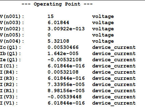 | 베이스-이미터 바이어스 전압 | V_BEQ | V(n003)−V(n004) = V |