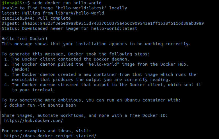 sudo docker run hello-world