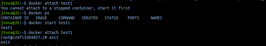 - start 후 attach 가능