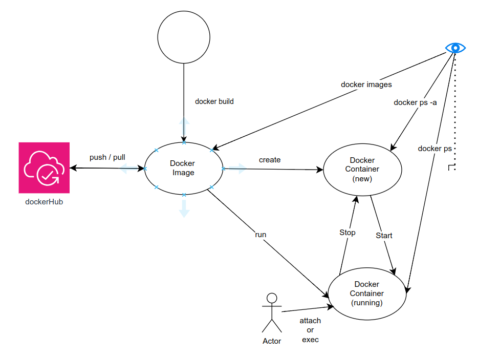 | Docker Registry | Docker Image를 저장하고 공유할 수 있는 저장소, Docker Hub가 대표적인 Docker Registry로, 이미지를 공개하거나 비공개로 저장 |