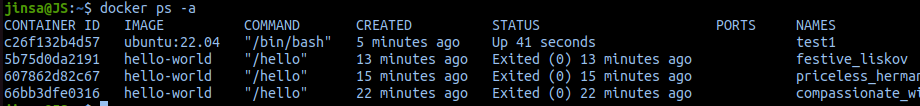 - 현재 실행 중(run)인 컨데티너만 나온다.