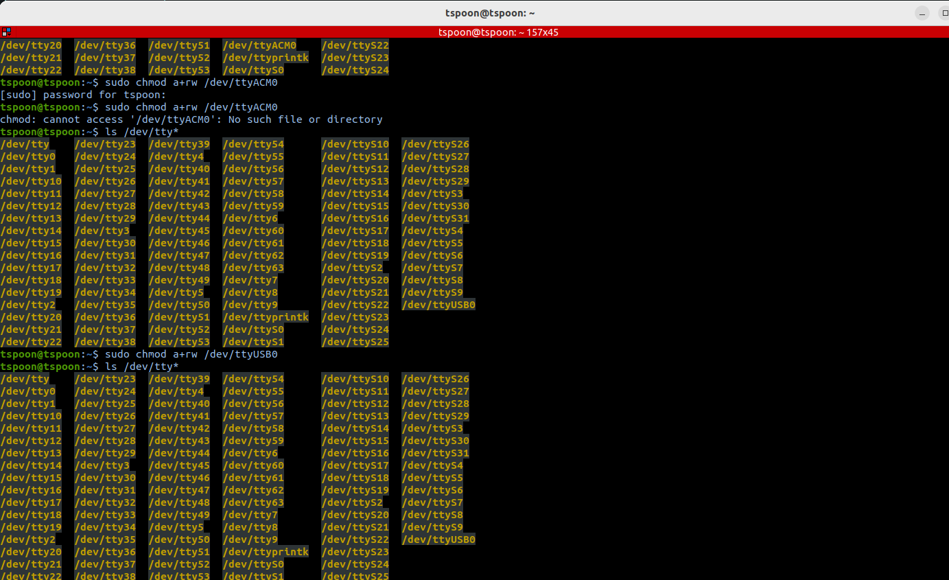 sudo chmod a+rw /dev/ttyACM0
