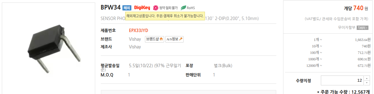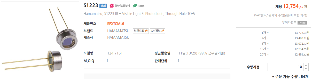 해당 포토다이오드는 대부분 전자 부품 판매 사이트(디지키, Mouser, RS Components 등)에서 쉽게 구입할 수 있습니다.