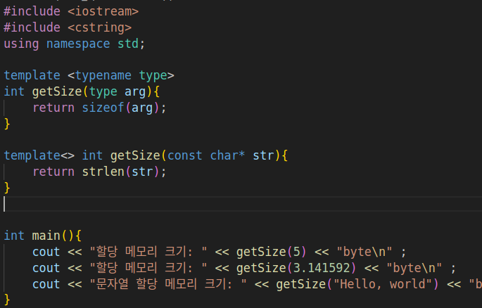 컴파일러가 알아서 해당 자료형에 맞는 함수를 생성하고 이를 '템플릿 함수'라고한다.