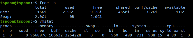 - vmstat: 가상 메모리와 관련된 더 상세한 정보를 보여줍니다.