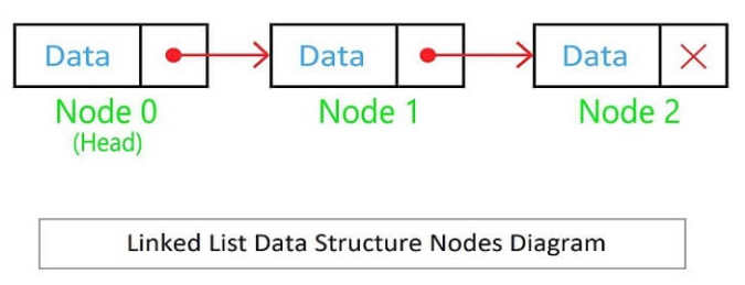 - 각각의 노드는 저장할 데이터(Data)와 다음 노드를 가리키는 포인터(next)를 가짐