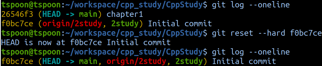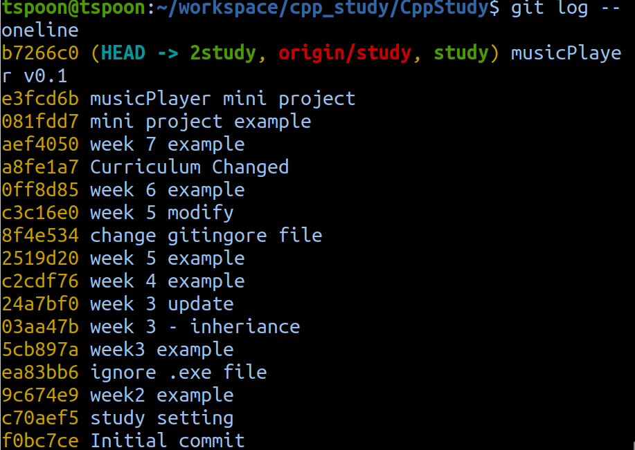 git log --oneline // 커밋 메시지를 한 줄로 간단히 표시