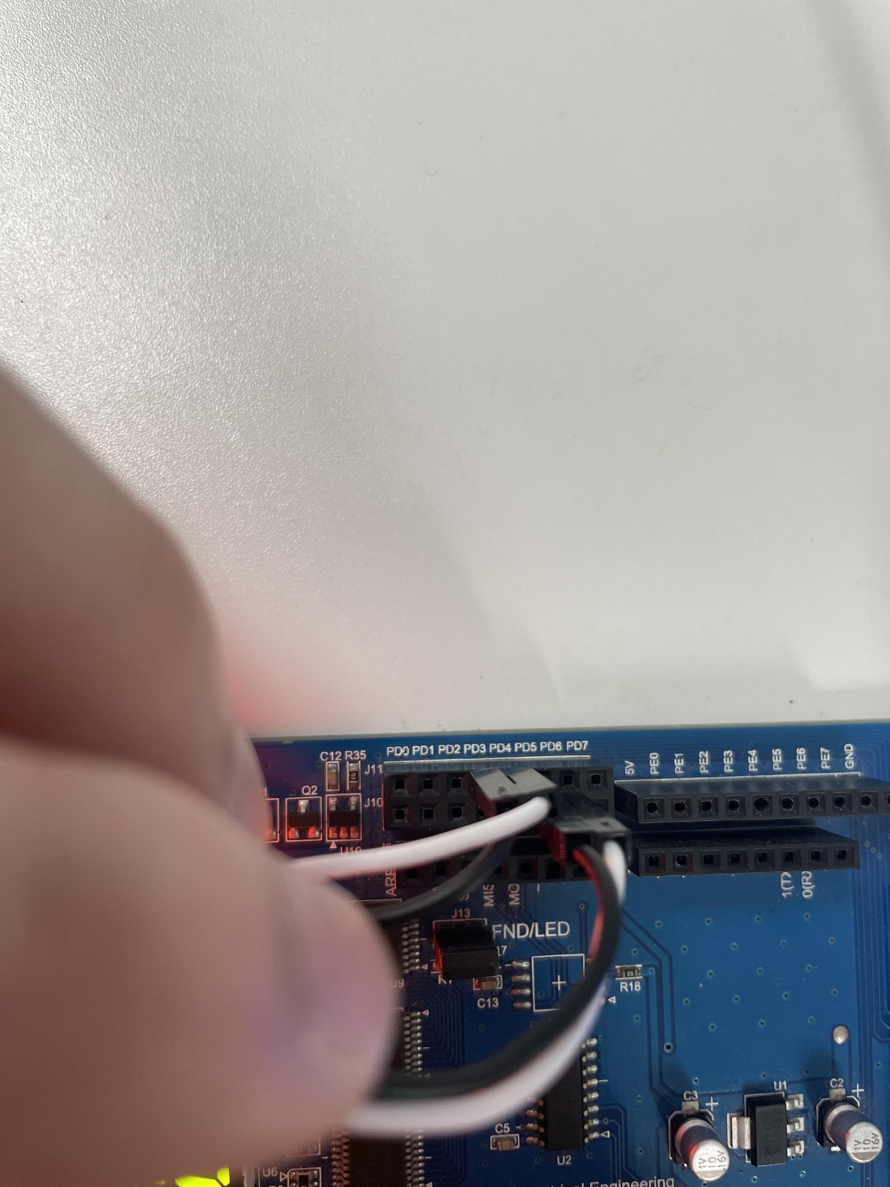 1. 이번 실험에서는 PB5와 PB6 pin을 PCINT5와 PCINT6 입력으로 사용하려고 한다. 그런데 실습 보드에서는 이 두 pin에 아무 것도 연결되어 있지 않다. wire를 사용하여 PD3과 PB5를 그리고 PD4와 PB6을 각각 연결하여라. 이렇게 하면 확장 보드의 스위치 SW3과 SW4가 각각 PB5와 PB6에 연결된다.