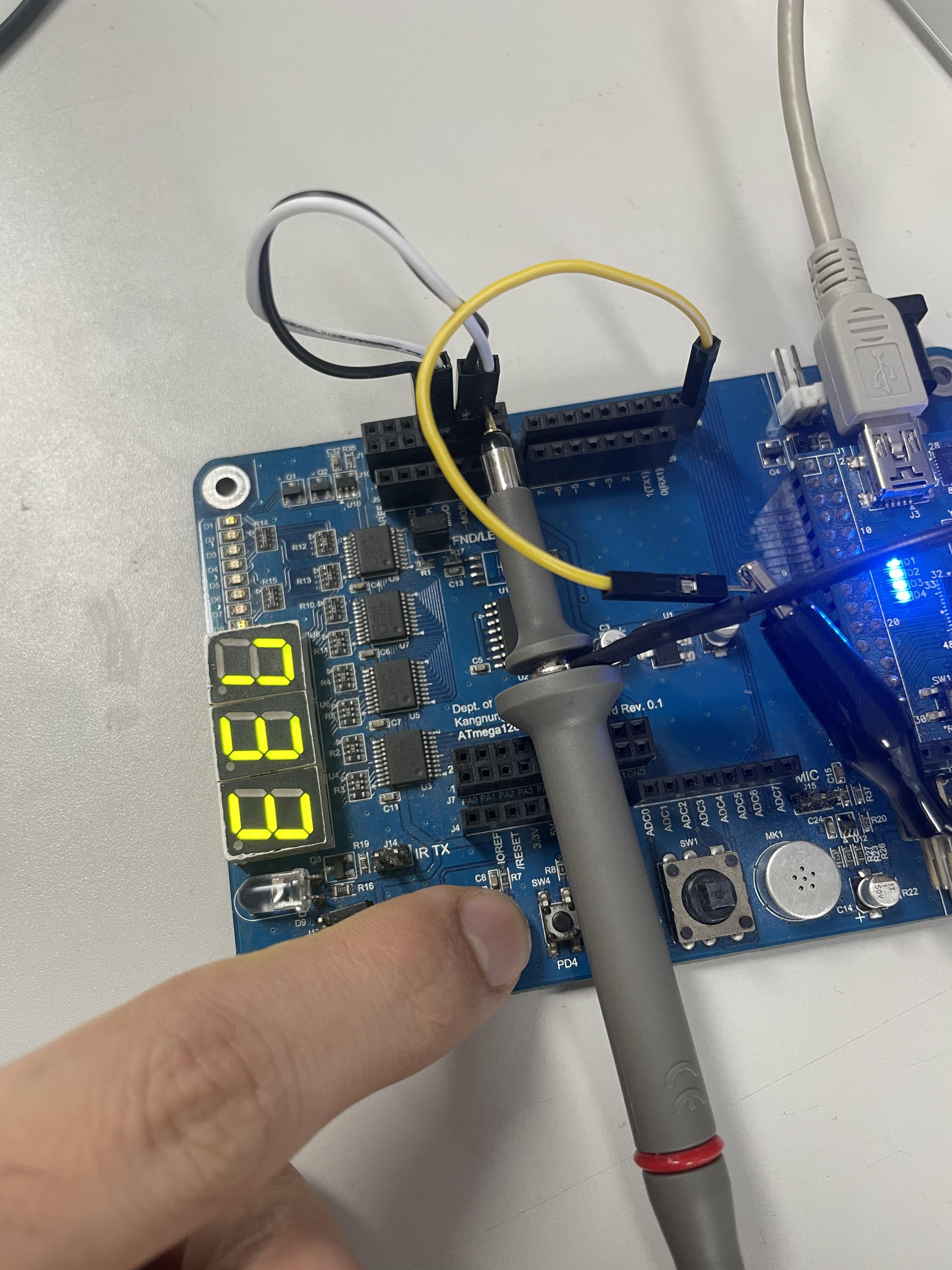 - 오실로스코우프를 사용하여 원하는 타이밍에 신호를 포착하는 방법을 익힌다.