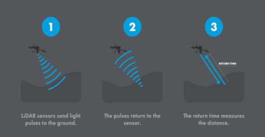 - Lidar는 Laser Beams을 사용하여 물체까지의 거리를 측정합니다. 레이더와 마찬가지로 측정하는데 반사광을 측정한다.